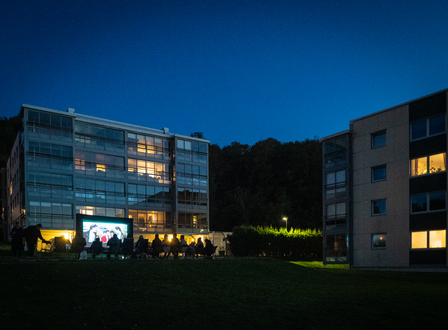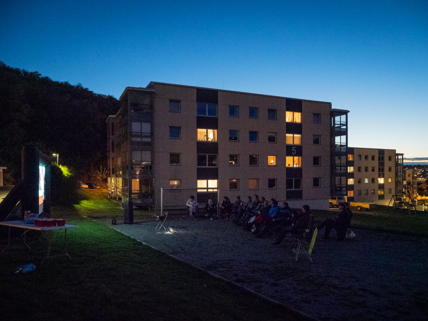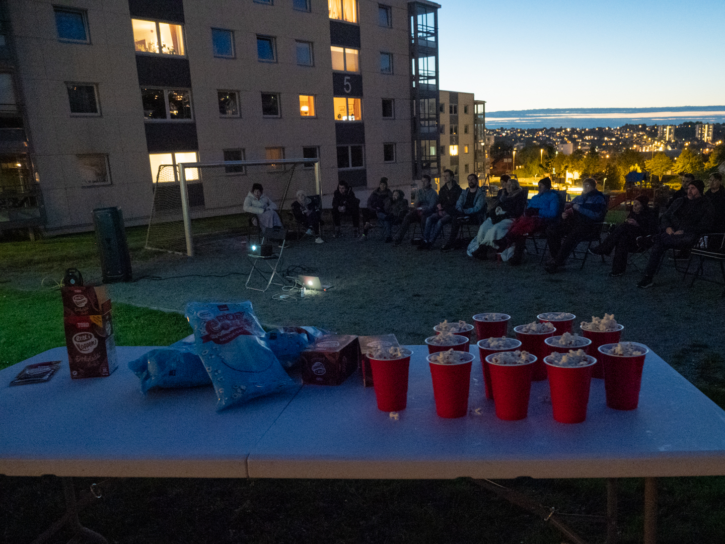 29.september. Mørkt. Stjerneklart. Kaldt. Utekino på ballbanen vår. Popcorn. Varm kakao. Sytten stykker – beboere med venner, familie og nabo. Magisk!