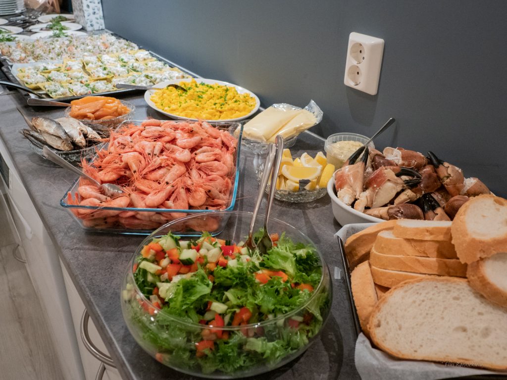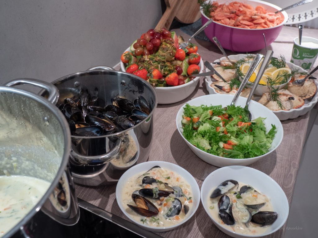 Styret har en målsetting om at beboere som ønsker det skal kunne bli kjent med naboer både i egen blokk og på tvers av blokkene. Vi er ett borettslag – ett fellesskap. Hva er da en mer hyggelig kombinasjon enn våre nye kjellerstuer kombinert med fantastisk mat? Norges Sjømatråd gjorde det mulig for 25 påmeldte beboere å smake på mange forskjellige delikatesser fra havet – der beboerne gikk mellom kjellerstuene i blokk 3 og 5 og fikk en uforglemmelig opplevelse. Dette på en helt alminnelig, regnfylt torsdag 3.november. Men uten kokken Ole Thomas Enga, som er sosialvert i blokk 3, sitter i styret og til vanlig er kjøkkensjef i Nordsjøen, hadde ikke sjømatmåltidet fått dette nivået! Restaurantopplevelse i kjellerne våre – slå den! Hvilke andre borettslag kan tilby det til sine beboere på dugnad?